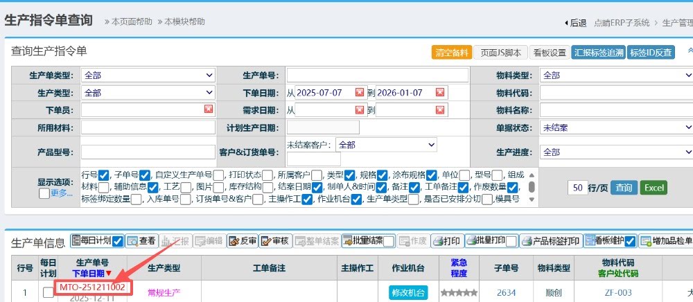 方法1: 操作步骤:生产管理-排产管理-任务单明细管理