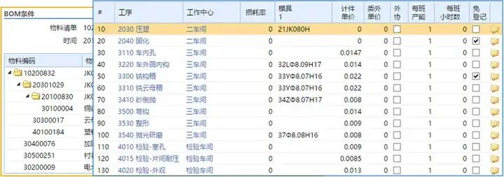 用料计划,上面是工艺路线。 2、字段解释——工艺路线