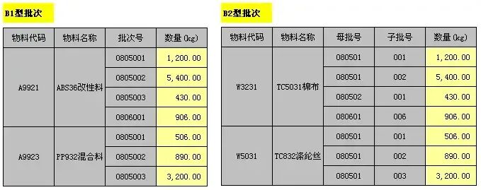(2)物料生产数据