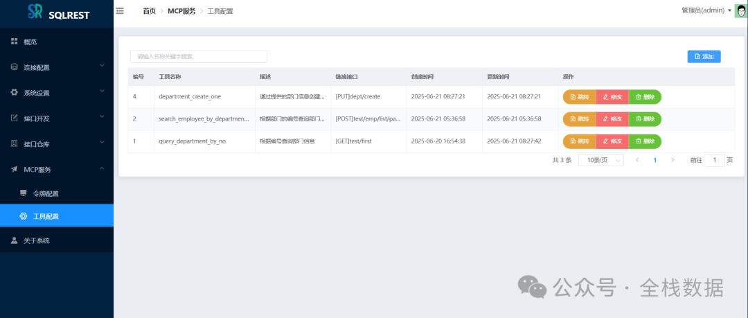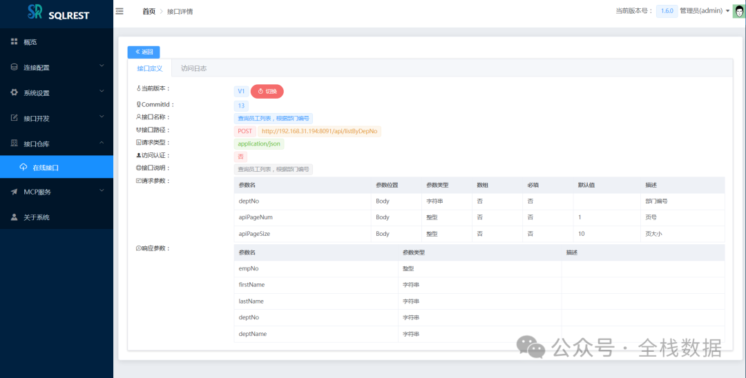 在Web开发的世界里,我们似乎总在重复着相似的剧本:设计好数据库表结构,然后便是无穷无尽的Controller、Service、Mapper三层架构代码编写。哪怕只是一个简单的增删改查接口,也得按部就班地走一遍流程。这种“体力活”不仅消耗着开发者的热情,也拖慢了项目的迭代速度。 有没有一种可能,让我们从这些重复劳动中解放出来,更专注于核心业务逻辑的设计? 今天,就给大家介绍一款来自Dromara开源组织的宝藏项目——SQLREST。它是一款免费开源的低代码工具,核心理念就是“SQL秒变API”,旨在帮助开发者快速构建RESTful接口,将我们从繁琐的CRUD编码中解放出来。 1 系统简介 SQLREST,顾名思义,它的核心能力就是将SQL操作直接转化为RESTful API。你不再需要为每个数据表编写大量的样板代码,只需在SQLREST的界面上配置好数据源,编写你的SQL语句(甚至支持MyBatis的动态SQL语法),简单设置一下接口路径和参数,一个功能完备、符合RESTful规范的API接口就诞生了。 它就像一个强大的“API工厂”,输入是你的SQL,输出就是可以直接被前端或其他服务调用的HTTP接口。对于需要快速交付的中小型项目、数据中台的数据共享场景,或是需要将数据库能力快速暴露给外部的需求,SQLREST无疑是一把利器。 定义接口 修改接口 接口测试 接口文档 接口详情 MCP服务 2 系统特点 SQLREST之所以能吸引众多开发者的目光,主要得益于以下几个鲜明的特点: