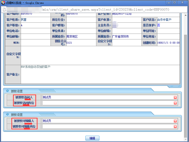 三、客户分享操作只有对应客户的主业务员才有权限操作