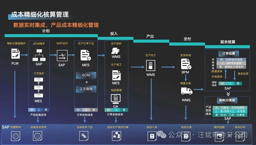 在现代制造业成本构成复杂性和管理需求多样性的背景下,一套高度可配置、模块化、业财一体化的解决方案非常重要,也必不可少!在企业内部的信息化系统(通常以ERP,即企业资源计划的形式存在),财务模块的成本核算不应是一个孤岛,而是与其他业务板块,如采购、库存、生产、总账等所有模块共享同一个数据源。这意味着:材料成本需要源头活水...