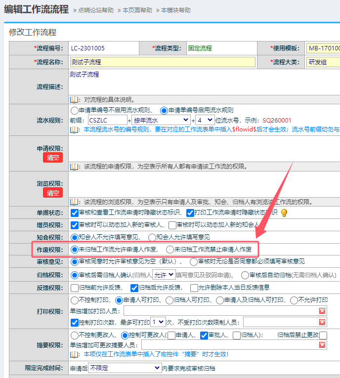 在工作流模板设计中,管理员可以设置是否允许申请人作废本人发出的工作流申请:如果设置为了允许申请人作废工作流申请,那么申请人在提交工作流申请后发现有问题时,可以直接作废...