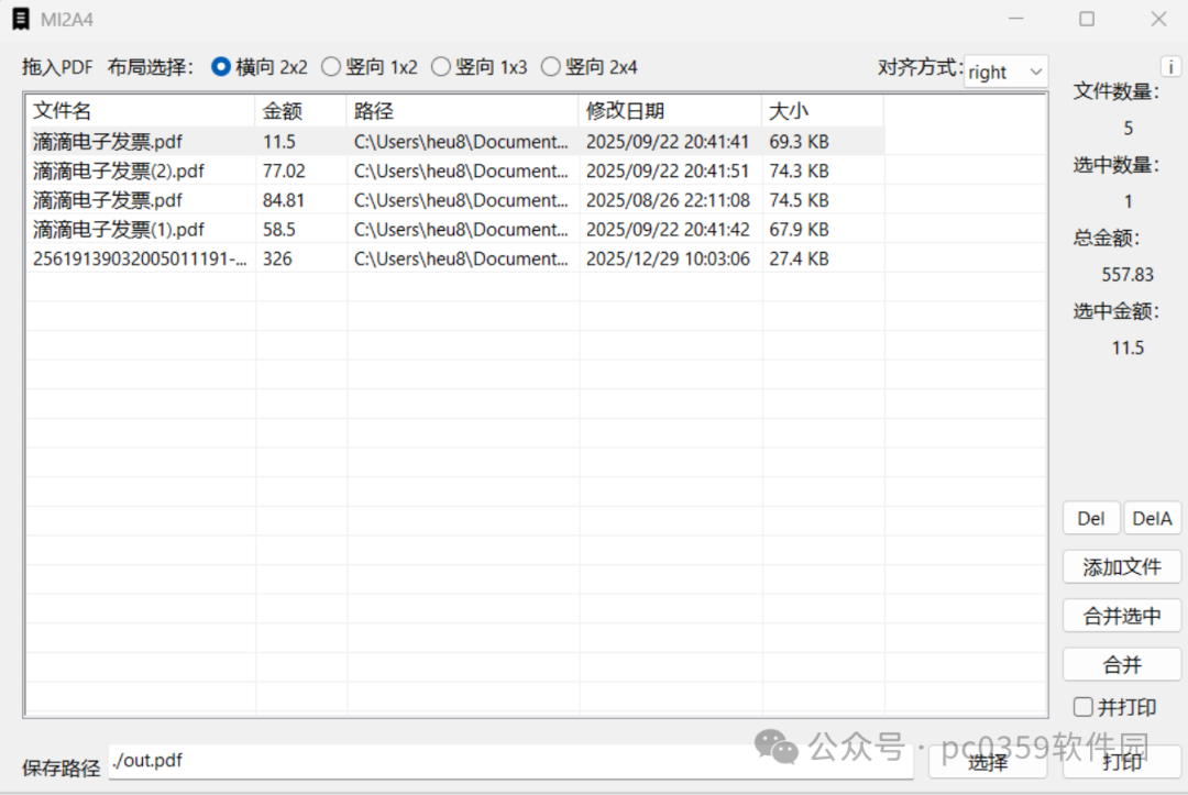 今天推荐一款PDF发票合并工具。支持添加、删除PDF文件列表;批量合并PDF发票到一个文件;支持多种发票排列布局;可以进行总金额和选中金额的统计,支持编辑金额。可以将PDF文件直接拖拽到窗口中。对于经常要处理发票的人来说,非常方便。百度网盘:链接:https://pan.baidu.com/s/1CXVbXyv4xN...