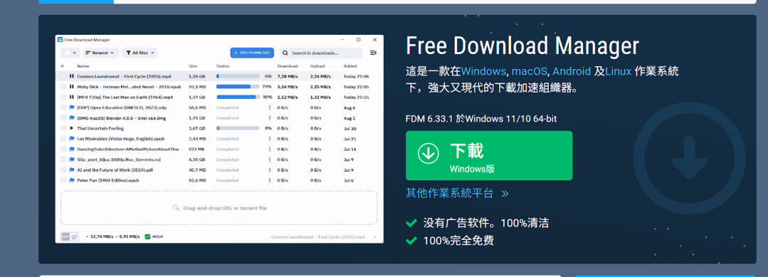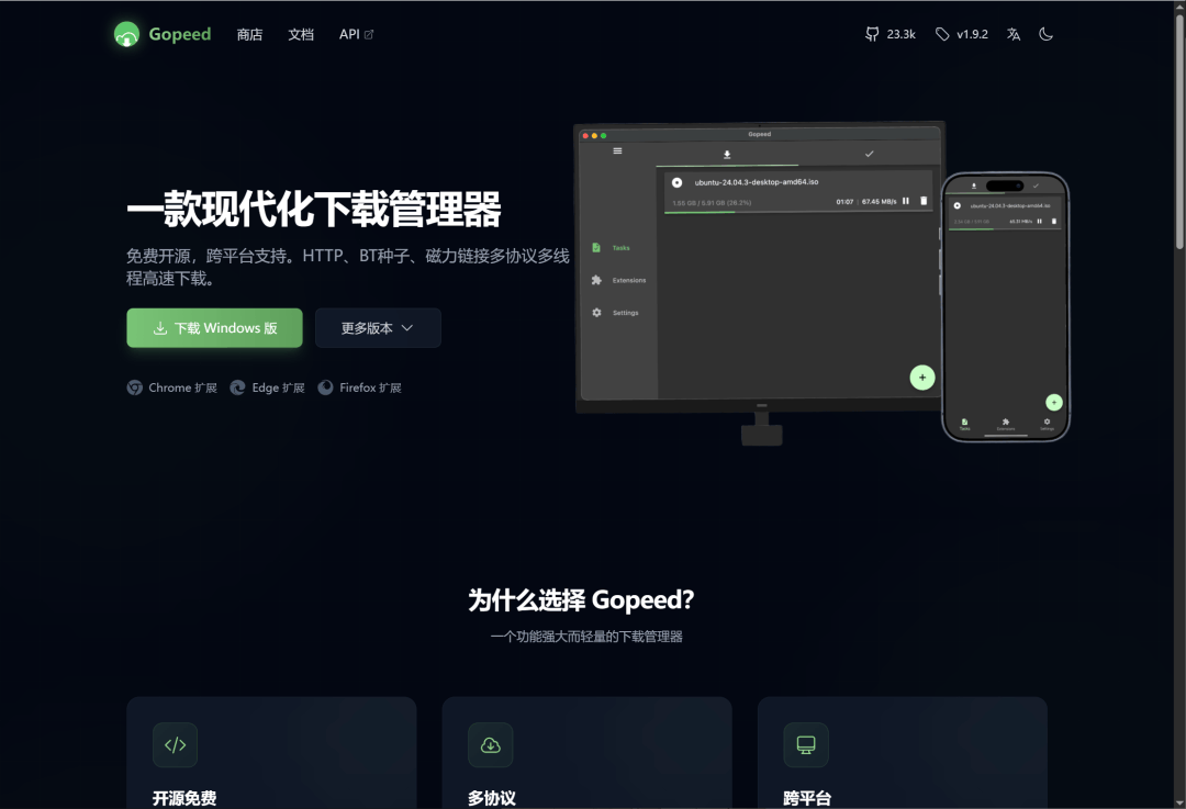 Gopeed一款免费开源跨平台支持HTTP、BT种子、磁力链接多协议多线程的高速现代化下载管理器。https://gopeed.com/zh-CN