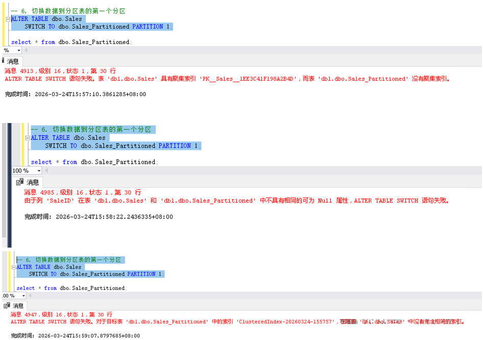 SQLServer分区切换(PartitionSwitching也叫分区交换)是一种高效的元数据操作,用于在普通表与分区表的指定分区之间快速转移数据,适合历史数据的快速迁移维护操作。其实Oracle等其它数据库也具备相似功能,原理大同小异。普通表↔分区表之间的双向切换限制结构一致性:表结构(包括聚簇索引、非聚集索引、约...