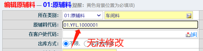 物料代码无法编辑,一般是因为该物料代码已经使用,下过订单、物料已经被作废或者启用了物料自动编码功能。请直接停用该编码,新增另外一个需要的物料编码。