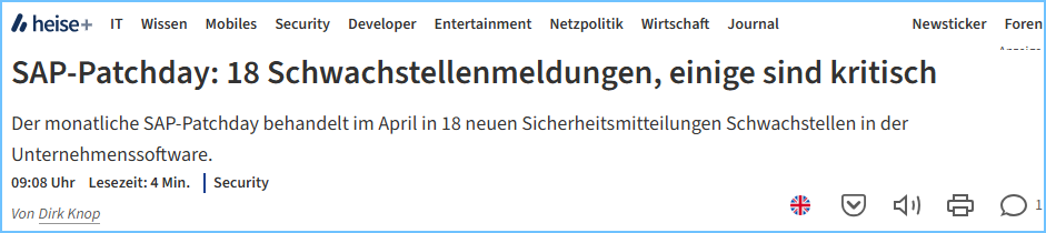 近日,据国外媒体报道:SAP修补了18个系统安全漏洞!SAP发布了2025年4月补丁日安全公告,修复了18个漏洞。其中三项被视为至关重要,包括SAPS/4HANA(私有云)和SAPLandscapeTransformation中的代码注入可能性,两者的CVSS评分均为9.9。另一个严重问题涉及SAPFinancial...