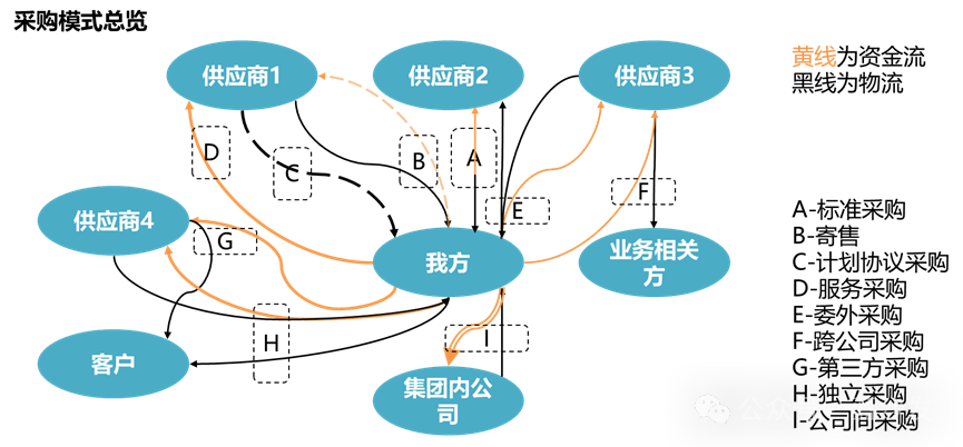 采购模式反映的是产业链中不同组织间物流和资金流关系,其中物流关系受到公司间生产供应计划关系的驱动,采购模式总体上是组织间生产关系的运行结果,又可称为供应模式,如果从销售角度看,也是销售模式的映射。首先可将产业链中的生产组织角色分为四种:我方--生产组织关系中的主体业务相关方--与主体方具有非供应销售的直接关系(如集团内...