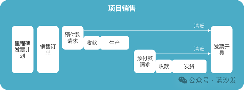 业务场景项目管理是要在特定的周期和预算完成项目目标,并控制过程中的风险。项目销售管理的重点是:跨越一个较长的周期控制交付与收款之间的风险,其手段就是伴随项目进程的阶段性付款。阶段性付款包括预付款和销售付款,前者未有销售和服务行为发生,后者伴随销售和服务行为发生。按照国家规定,为防止虚开发票的情况,预付款一般不允许出具增...