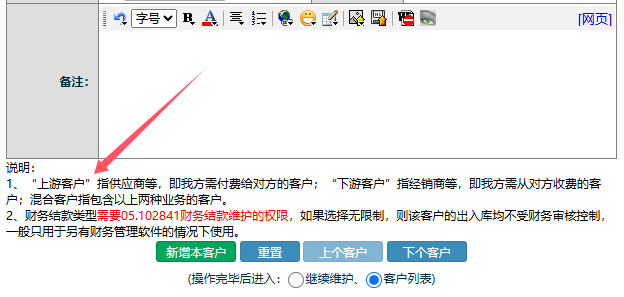 点晴ERP客户维护管理页面中的客户和供应商,如何区别和设置?注意ERP系统客户维护页面上的提示:“上游客户”指供应商等,即我方需付费给对方的客户;“下游客户”指经销商等,即我方需从对方收费的客户;“混合客户”指包含以上两种业务的客户。也即:通常意义上的客户,就是点晴ERP中的下游客户,此处应该设置为“下游客户”;通常意...
