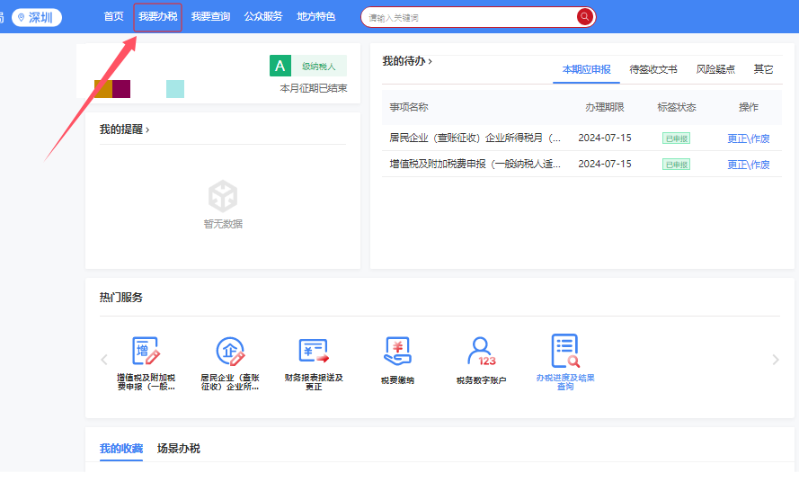 登录网址:https://etax.shenzhen.chinatax.gov.cn/进入后,点击顶部的“我要办税”:点击“开票业务”:选择相应的业务类型,正常情况下应该是的点击“蓝字发票开具”:然后进行相应的操作即可。