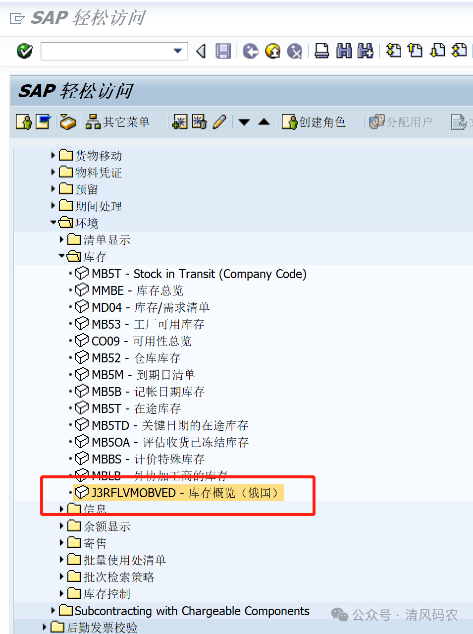 SAP中常用的收发存报表有MB51,MB5B,但是相对于这两个报表,还有一个俄罗斯报表J3RFLVMOBVED功能更为强大,这个报表当初是SAP公司针对俄罗斯开发的一张本地化报表,不过从ECC6.0以上版本中作为SAP的标准报表交付使用了。菜单路径如下:相比较MB5B,俄罗斯报表针对特殊库存对象可以根据客户(W库存),...