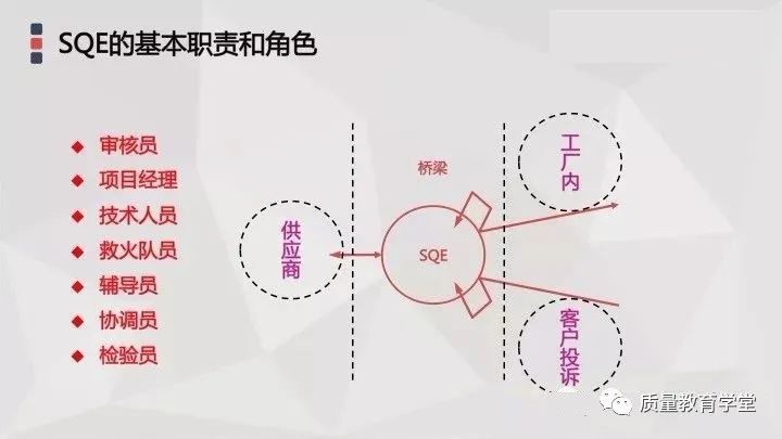导读SQE供应商质量工程师,这个岗位的职能是保证供应商提供的产品和服务符合公司质量要求。因此,这个岗位介入了选择供应商、评估供应商、供应商绩效改进、涉及供应商的客户投诉等方面,并在有关质量方面进行主导。既然SQE的职责包括质量控制,这个岗位设在质量部似乎更能表现质量方面的专业性。但SQE与采购分属在不同部门,毫无疑问会...