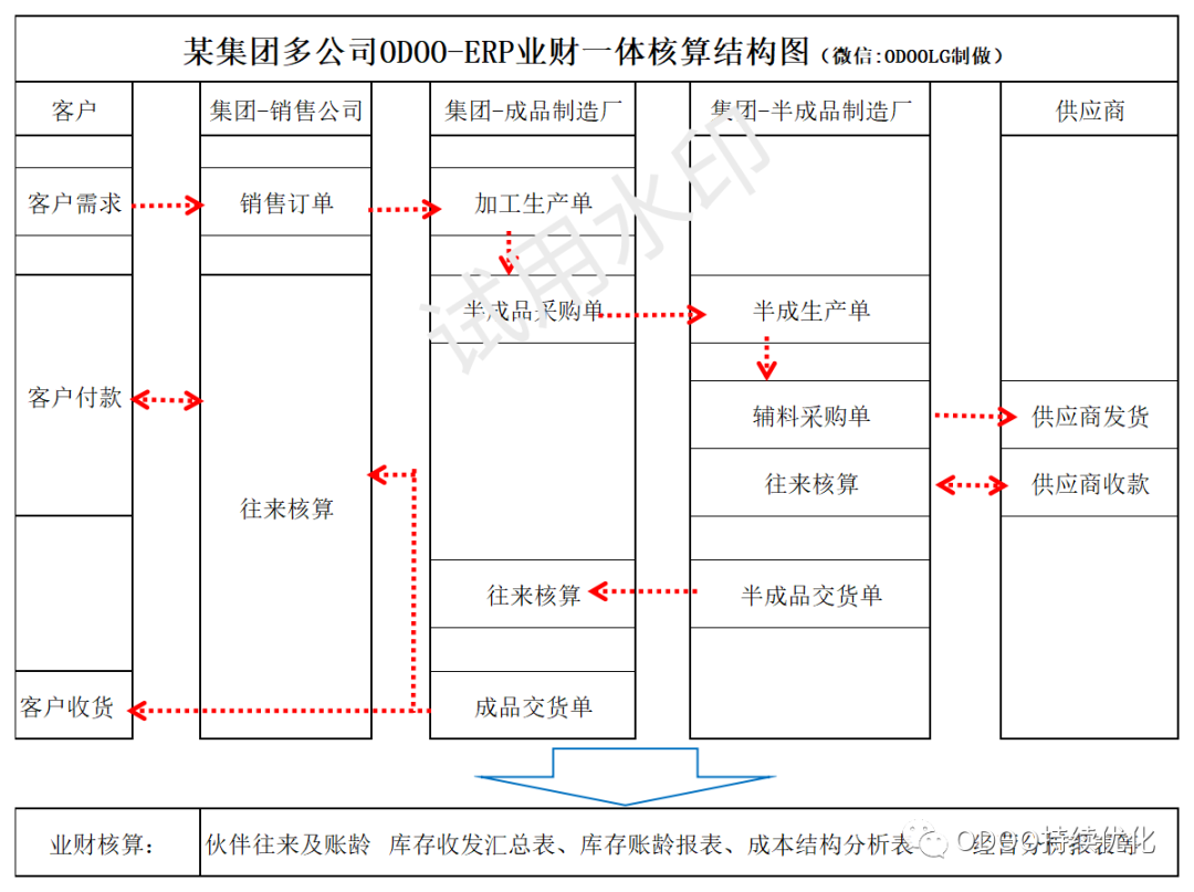 某集团旗下有销售公司、加工制造厂、原料生产厂等多家公司,此类型公司从客户订单到完成交货,业务环节相对复杂,业务单据多,出纳银行收付款流水多、对象多,难以正确核销,跟单部难以全面了解订单进度,供应商往来数据难以核对,财务部核算工作量巨大,产品成本构成复杂,难以核算。通过实施ODOO-ERP业财一体系统,实现:1.重新梳理...