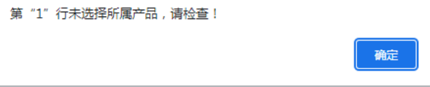 点晴ERP-弹出提示:未选择所属产品,请检查情况描述:新增超领单时,点提交时弹出提示:第“”行未选择所属产品,请检查。如下图:原因:某一行的所属产品没有选上。如下图:解决方法:在提示的那一行,选择所属产品,不能为空再提交即可。