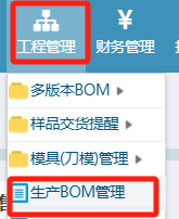操作步骤:工程管理——生产BOM管理;点击进入页面后如下图操作;