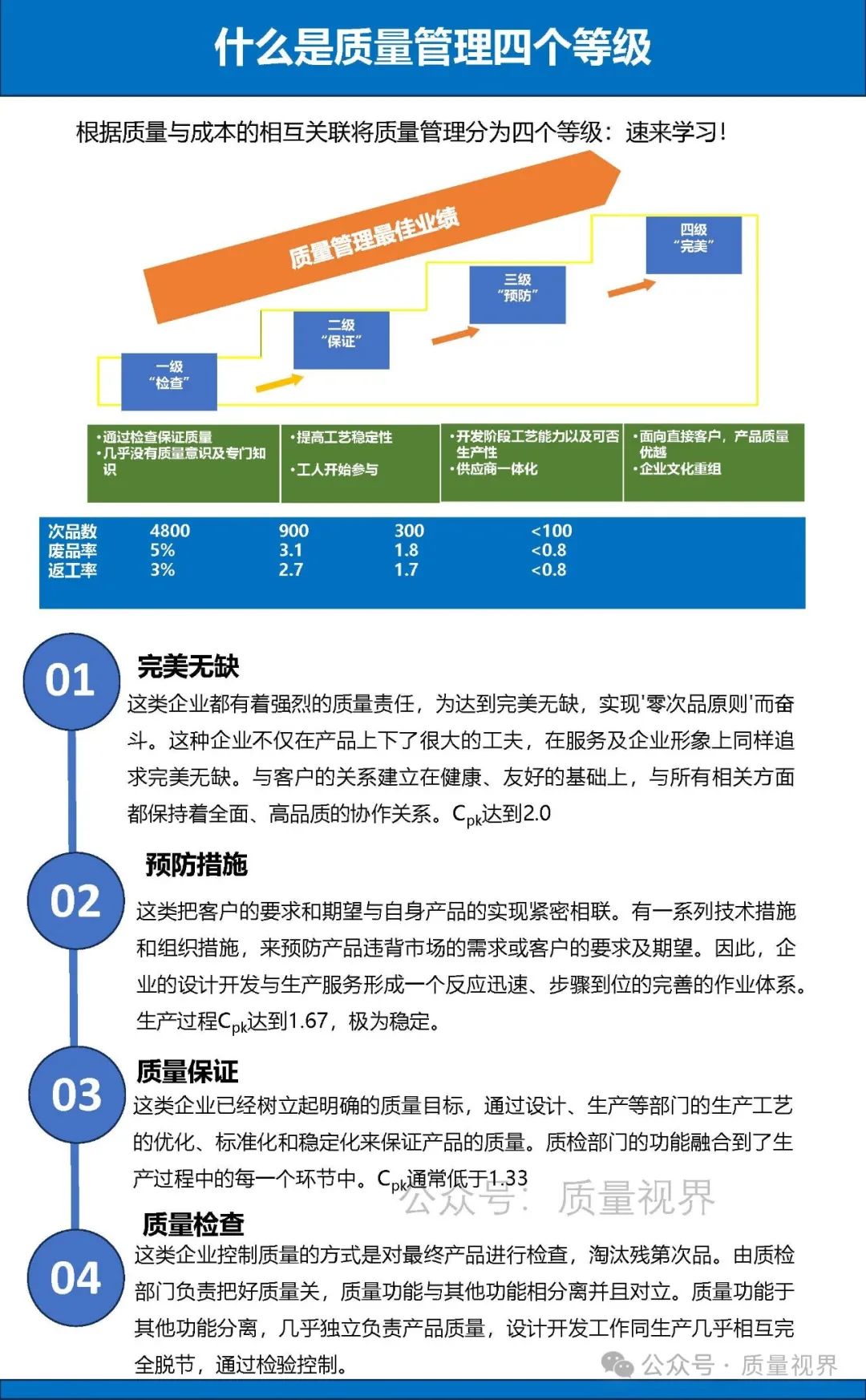 导读由于质量问题导致批量退货、成本上升、客户满意度下降,最终将导致市场的丧失,进而会引发公司的生存危机。这不是危言耸听,这是许多企业血的教训。回顾近年来公司在质量管理上产生的各种问题,结合克劳士比大师关于质量的先天缺失判断,归结起来就可以发现我们对待质量管理的几个误区: