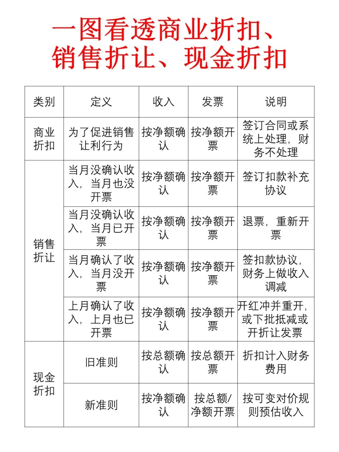 商业折扣、销售折让、现金折扣,容易混乱,分不清楚,一篇文章讲透,告诉你1,商业折扣为了促进销售给客户让利的商业行为,现实中很普遍的,例如:商场里的打折促销,商品吊牌价为1000元,8折销售,那么零售额就是800元。这个时候,含税收入按照零售额800元来确认,发票也只要开800元。实际操作上,业务端签订合同或系统录单操作...