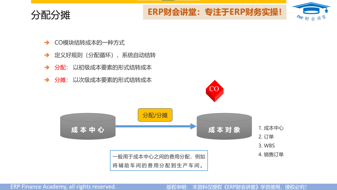月末分配费用时,分摊和分配是两种常见的方式,区别在于结转的成本要素。分配是以初级成本要素的形式结转成本,分摊是以次级成本要素的形式结转成本。在分摊费用之前,我们需要定义一个分摊规则,指定将公共成本中心的费用分摊到哪些成本中心,分摊哪些费用,以及分摊的比例等信息。接下来,我们介绍如何定义费用的分摊规则。KSU1进入分摊规...