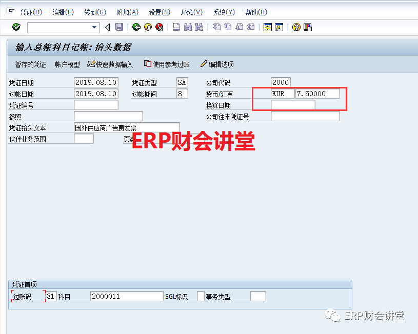 对于外贸型公司,或是有进出口业务的公司,经常会涉及到外币业务。有的公司外币业务比较少,发生外币业务时直接转换成本币记账,但是有的情况下还是需要以外币记账。例如,国外的公司给我们做了一个广告,现在收到发票10万欧元,账期为1个月。发票挂账时广告费要以本币记账,应付账款要以欧元记账。在有些软件中,一张凭证里面可以选择多个货...
