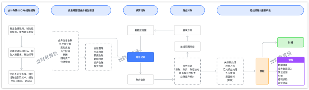 财务月结,也称财务月度结账,指把一定时期(一般指月度)内发生的全部经济业务(如业务收入、成本费用等系列涉及会计核算的场景)登记入账,同时将各账户余额结清或结转下期,完成账务处理和稽核,并进行账务的账期切换,出具财务报表,如公司内部各个业务线维度的管理报表,以及对外披露的监管报表,使各账户记录暂告一个段落的过程。简单来说...