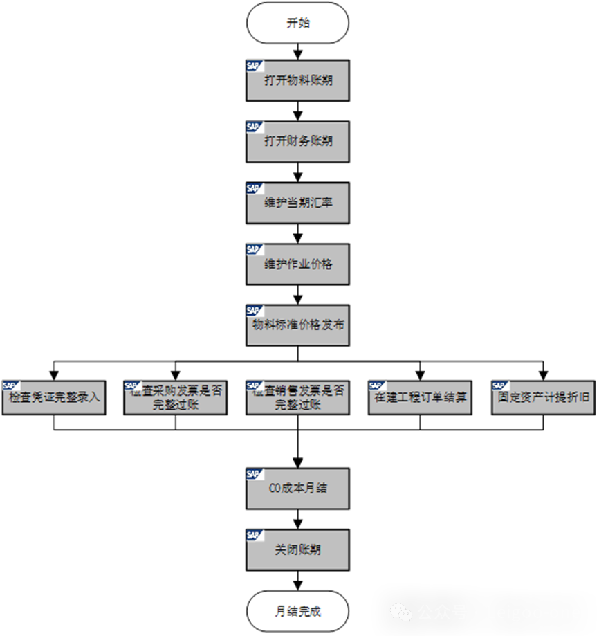 SAP的月结大致可以分为四个方面:月初准备、FI月结、CO月结、关账。“月初准备”是为了次月的业务能够正常运行,这对7×24小时生产的企业尤为重要;“CO月结”是月结的重点;“关账”后即可出具报表。不同的企业在月结步骤上略有差异,但主要内容都是一致的,具体月结步骤如下。一、月初准备操作步骤1、打开物料账期MMPV打开物...