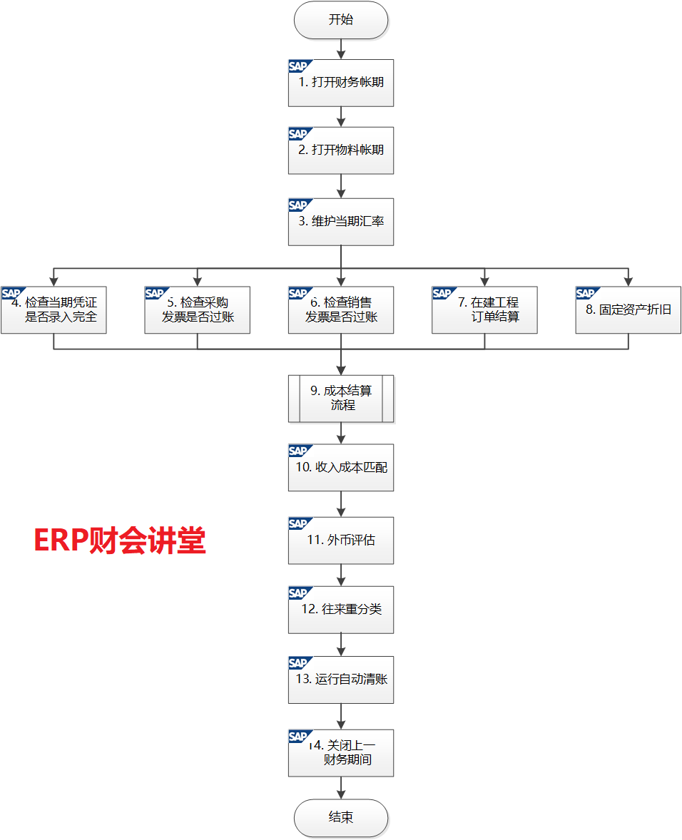 刚接触SAP的财务人员对SAP月结可能会比较陌生,尤其是成本结账部分无从下手,不敢轻易操作,无法分析问题原因,不知结账是否正确,也不知道如何查看数据...本文给大家介绍一般制造型企业SAP月结的基本步骤,以及每一步的作用、具体操作、原理、运行结果、如何检查等。一般生产型企业的月结流程如下:其中,成本结算流程如下:使用S...