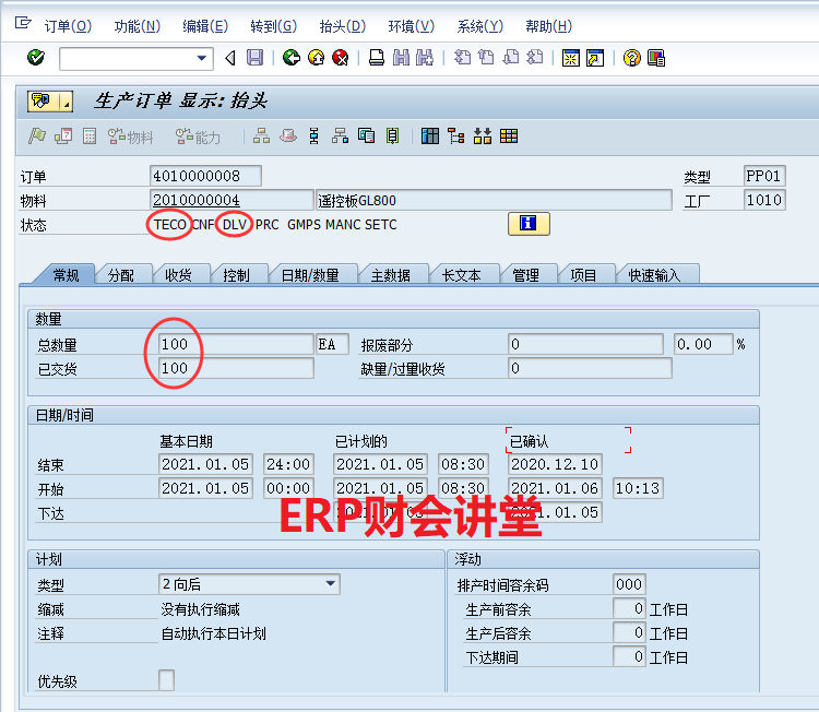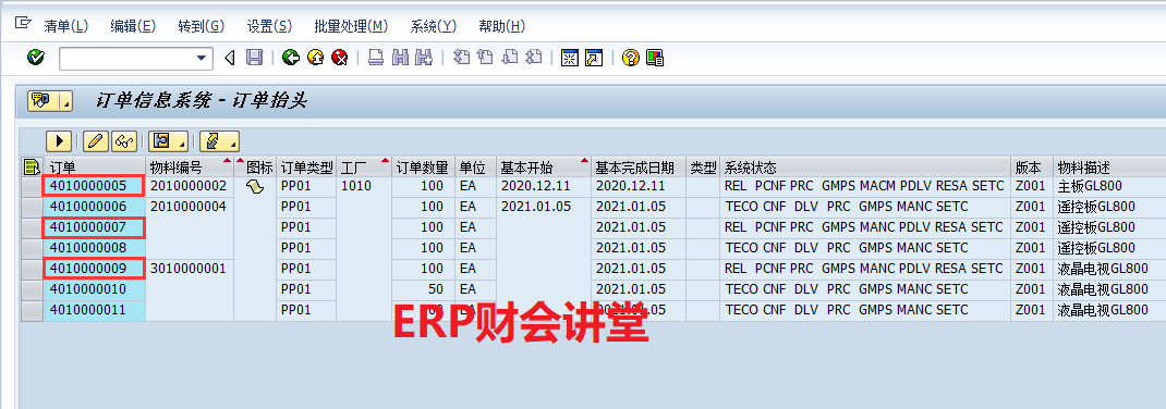 CO月结时,对状态为PDLV的订单计算WIP,状态为DLV或TECO的订单计算差异,这句话我们一定要记住!!!对于DLV或TECO的生产订单,生产已经完成,不会再做进一步的投料或报工。成本结算时,需要将订单的差异结转到产品上。订单差异=投入–产出,“投入”为计入订单的各项成本,“产出”为成品入库结转的金额。以订单401...