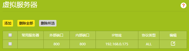 新版TP-LINK路由器端口映射图示 1、用浏览器打开路由器的WEB管理界面: 2、点击导航栏里的"应用管理": 3、再点击"虚拟服务器”: 4、设置好的虚拟服务器: