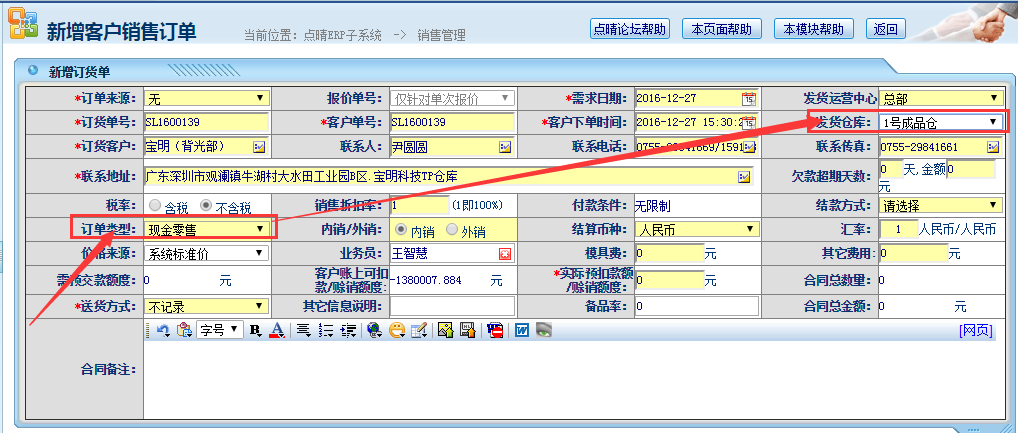 操作步骤:销售管理——新增销售订单,如下图所示: 选择销售客户——录入结款方式 注意事项,订单类型需选择“现金零售”类型,发货仓库选择对应的出货仓库。 完成表头信息录入,之后录入明细信息;如下图: 录入对应明细与数量,点击“保存并确认”按钮完成操作。 注:零售单提交后,系统自动生成送货单,自动扣减库存,自动回单,自动结案。 点晴模切ERP更多信息:http://moqie.clicksun.cn,联系电话:4001861886 该文章在 2016/12/27 15:45:34 编辑过 |