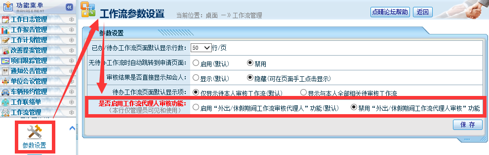 如果网管设置为:禁用“外出/休假期间工作流代理人审核”功能,那么所有普通用户都不允许使用审核委托人功能。