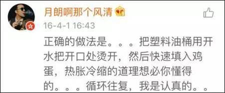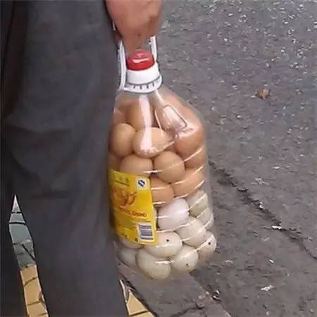 春运返程路上,许多人会从家里带些土特产,我们在车站发现了这样的奇观。 ![]() 鸡蛋易碎,用油桶装,不仅能保护鸡蛋,拎起来还非常方便,不怕风不怕雨,劳动人民真是太智慧了! ![]() 有的油桶里除了鸡蛋,还会放大米,不仅能充分利用空间,还能进一步保护鸡蛋。 拎着这样一桶鸡蛋走在马路上,回头率简直百分百。 围观的人都在思考同一个问题:鸡蛋到底是怎么装进去的啊! ![]() ![]() 不知道四年前研究了三年的这位朋友研究出来了没…… 作为一个勤于思考的好少年,这种问题自然难不倒小编。 问:把鸡蛋装进油桶需要几步? 答:3步,打开盖子,把鸡蛋放进去,盖上盖子,哦了~ ![]() 啥?瓶口太小鸡蛋进不去? 有朋友说了,那就先把一只母鸡放进去,生完蛋再放出来~ ![]() 别小看了这桶鸡蛋,它包含了深刻的物理学原理:热胀冷缩! ![]() 大气压强! 还有化学原理呢:碳酸钙和醋酸反应后会生成二氧化碳。 ![]() 好吧,下面我们认真正经地回答你! 其实,真正的答案简单到超乎你想象:第一步,用剪刀在油桶上竖着剪一个口子;第二步,手拿着鸡蛋伸进去,轻轻放下,就像这样: 第三步,用透明胶带把油桶剪开的地方绕几圈。 ![]() 这里需要注意的是,口子一定要竖着划才保险,横向的口子因为重力原因,很容易裂开。 ![]() 如果油桶上贴着标签,那么你可以在标签的地方用刀割开一道和标签一样长的口子,鸡蛋放进去之后再缠上透明胶带,这样的伪装简直完美,根本看不出来。 ![]() 听完答案有没有一种被耍了的感觉?但这的确是认真的…… 同样的方法还能用来装饼干; ![]() 空油桶装碗碟、葡萄等怕挤压的东西。 ![]() ![]() 没想到, 最简单朴实的方法竟然最实用, 这就是生活的智慧啊! 该文章在 2017/2/20 18:23:45 编辑过 |