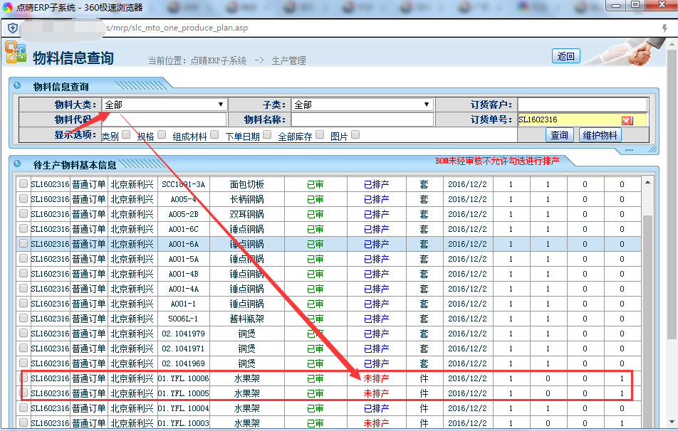 手工排产操作时,在选择对应销售单时,需要对应修改查询条件,默认物料大类为“成品”,需要将其改成“全部”再进行查询,如下图所示: 如果不设置,将会漏掉“原材料”的明细。 点晴模切ERP更多信息:http://moqie.clicksun.cn,联系电话:4001861886 该文章在 2017/8/1 8:33:57 编辑过 |