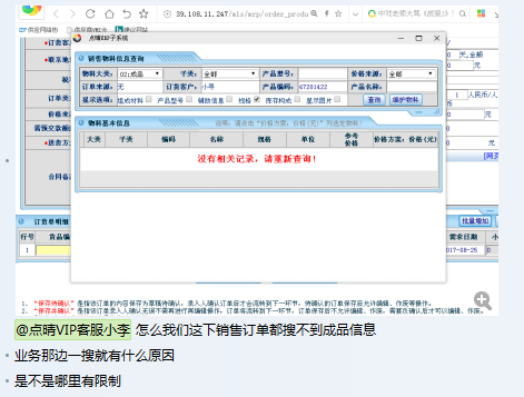 [点晴模切ERP]为何销售下单物料选择页面查不到物料信息?
