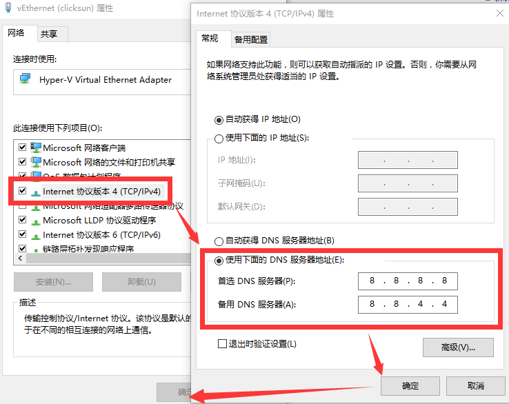 ![]() IE浏览器提示 谷歌浏览器提示 ![]() 如果网络链接是正常的,仅在打开部分网页时出现网页加载不成功时,以下技巧可帮到你: 步骤一:打开本地连接属性。 步骤二:在“常规”选项卡下双击Internet协议(TCP/IP),如下图: 步骤三:在弹出的属性对话框内,单选下面的“使用下面的DNS服务器地址",并分别填入: 首选DNS:8.8.8.8 备选DNS:8.8.4.4 如下图示。 步骤四:点击"确定" 该文章在 2017/11/7 16:08:43 编辑过 |
