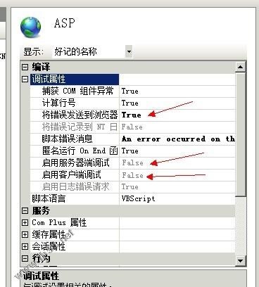 2、然后在IIS管理器→ASP里,把错误信息发送到浏览器这个选项开启(True),具体如下图所示: