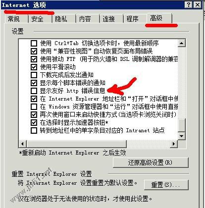 取消勾选“显示友好 http 错误信息”,然后就可以看到真正的错误原因了。