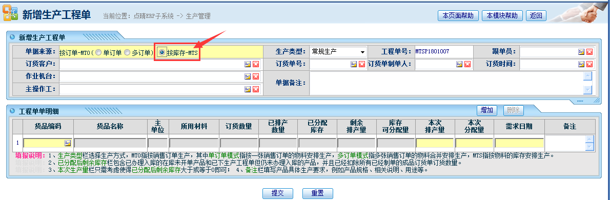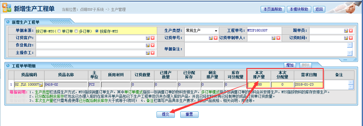 2、进入界面后,勾上“按库存”,选择需要排产的成品信息,录入数量和日期,提交完成。如下图所示: 点晴模切ERP更多信息:http://moqie.clicksun.cn,联系电话:4001861886 该文章在 2018/1/23 12:03:04 编辑过 |