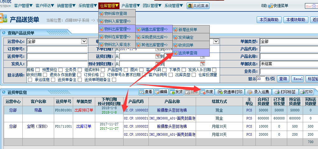 先在仓库管理-》物料出库管理-》销售出库管理-》送货单查询中,找出这张单后,将它作废,然后通知有权限的人员反审核销售订单,修改销售订单,再提交审核后,重新下推送货单即可。 反审核参见教程: 点晴模切ERP更多信息:http://moqie.clicksun.cn,联系电话:4001861886 该文章在 2018/2/5 10:26:37 编辑过 |