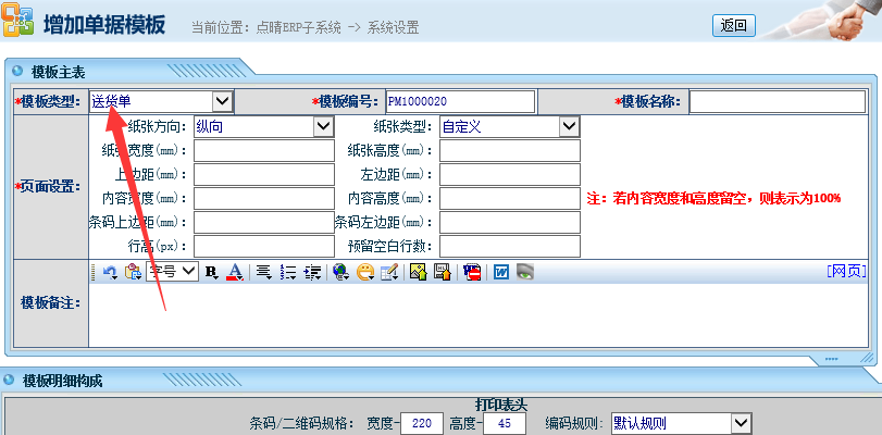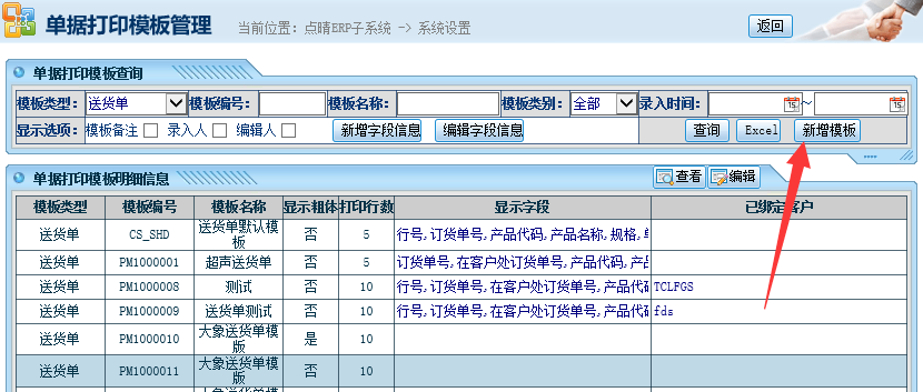 ![]() ![]() 以管理员身份登录点晴ERP,进入系统管理-》打印设置-》单据打印模板设置: 然后点击“新增模板”: 然后将模板类型设置为“送货单”,参考其他送货单模板,进行必要的设置后就可以开始使用了: 点晴模切ERP更多信息:http://moqie.clicksun.cn,联系电话:4001861886 该文章在 2018/3/30 11:47:45 编辑过 |