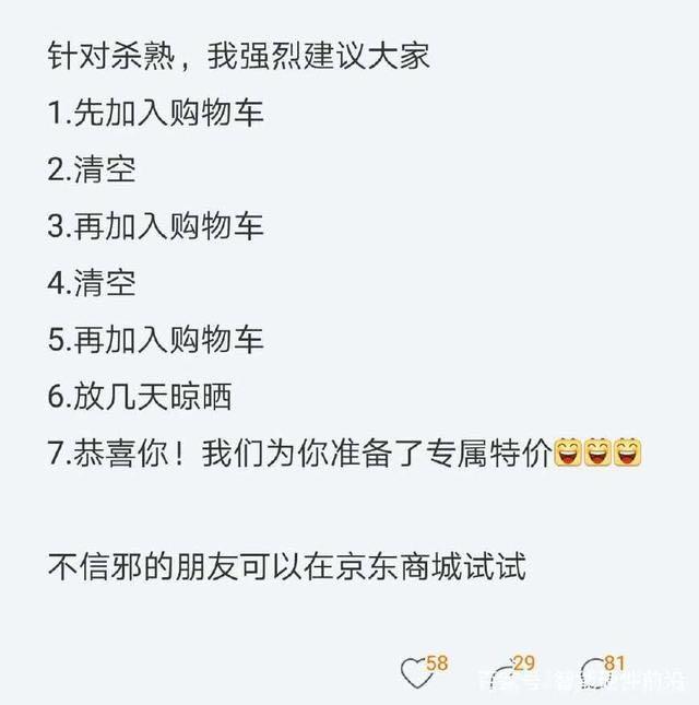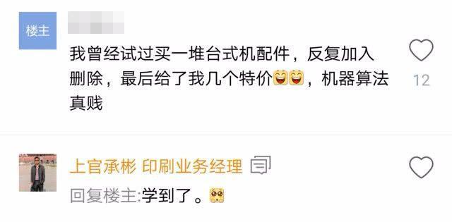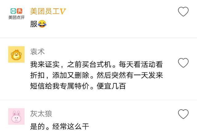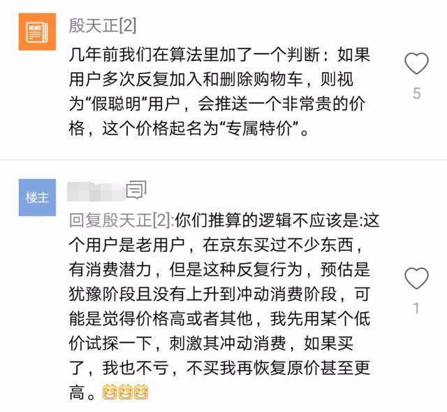 最近关于“大数据杀熟”的新闻引发很多网友关注,不少用户发现,使用打车软件出行、通过订票网站预订电影票,网上购物等,等级高的常客,反而要支付更高的价格;而很少使用相关服务的新顾客,却能享受到较低的价格。 如何才能让自己不被大数据杀熟,一名网友发帖称:针对杀熟,我强烈建议大家试试按下面的步骤操作一下: 1、先加入购物车 2、清空 3、再加入购物车 4、清空 5、再加入购物车 6、放几天晾晒 7、恭喜你!我们为您准备了专属特价 不信邪的朋友可以在京东商城或者淘宝上试试。 楼主表示亲测有效:我曾经试过买一堆台式配件,反复加入删除,最后给了我几个特价,机器算法真贱。 也有网友表示:我来证实,楼主说的没毛病,之前买台式机。每天看活动看折扣,添加又删除,然后突然有一天发来短信给我专属特价,便宜几百。 一名昵称为京东的员工表示,我都不知道我们在干什么?满满的套路,真是良心楼主。 楼主称:大数据算法很聪明,但是相比于人还是次了点。 也有在职的大数据工程师表示:几年前我们在算法里加入了一个判断,如果用户多次反复加入和删除购物车,则视为“假聪明”用户,会推送一个非常贵的价格,这个价格起名为“专属特价”。 楼主称:你们的推算逻辑不应该是,这个用户是老客户,在京东上买过不少东西,有消费潜力,但是这种反复的行为,预估是犹豫阶段且没有上升到冲动消费阶段,可能是觉得价格高或者其他,我先用某个低价试探一下,刺激其消费冲动,如果买了,我也不亏,不买我再恢复原价甚至更高。 该文章在 2018/4/11 18:20:12 编辑过 |