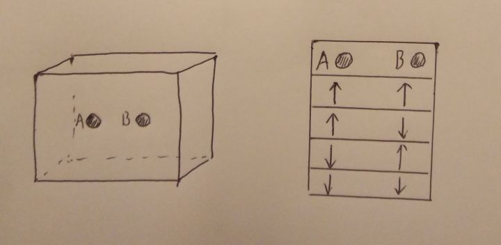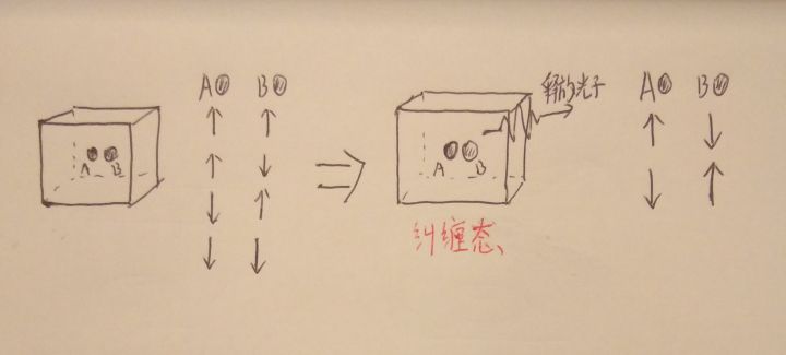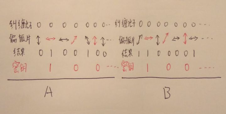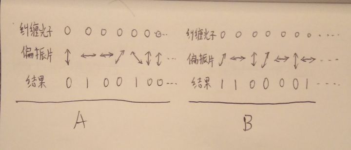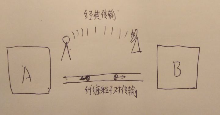 作者:罗恩齐 什么是信息? 信息的一个比较被认可的定义是1948年数学家香农在论文中提出的:信息是用来消除随机不定性的东西。 比如,盒子里有一个硬币,它可以是正面向上,也可以是反面向上,在打开前我们是不确定的。 然后我们打开盒子,我们眼睛看到的盒子硬币反射出来的光就是一个信息,因为它可以让我们消除正反面的不确定性,让我们得到一个确定的结果。 通讯最重要的要素就是信息,所以如果这个过程中没有涉及到信息的传递,那么就不能称为通讯。 而我们知道,信息传递的介质,光,声音,引力波等等都是以小于等于光速的速度传播的,这就是为什么说信息传递的速度要低于光速了。 什么是量子纠缠? 假如说一个盒子里有两个硬币,而这两个硬币的状态是随机的,那么在打开盒子前,盒子里面就有如图的四种可能。 一个电子类似于硬币,也是有两种状态,上旋和下旋。 一个盒子里有两个电子,这两个电子的状态也是随机的,那么在打开盒子观察前,盒子里的电子也是有如图的四种可能。 但是电子特殊的一点是,当两个电子靠的足够接近的时候,它们两个就可能发生一种变化,它们会释放出一个光子,同时两个电子进入了一个纠缠状态。此时两个电子就不是有四种可能,而是变成如图的只有这两种可能了,就是说两个电子的状态一定是相反的。 当我们把两个电子分开,放到两个很远很远的地方,这两个电子的这种关系依旧会存在,当我们测量其中的一个电子,发现它比如是上旋的时候,那么我们立刻知道,遥远另一个地方的那个电子一定是下旋的。 这里要注意一点,宏观世界里,在观察前盒子里的硬币是已经有了一个客观存在的状态的(比如是正面),可是对于微观的电子来讲,在测量前它是没有一个客观存在的状态的,它是处于上旋和下旋的叠加状态中,测量的过程才赋予了它一个确定的状态。 一旦进行测量之后,两个电子的纠缠态就会被打破了,变成了完全独立的两个电子了。 这就是量子纠缠,不仅是电子,光子,中子等等其他的粒子也同样可以有量子纠缠的现象。 量子纠缠并不能用作超光速信息传递,是因为,无论我们对A电子作何种操作,B电子附近的人都是无法知道的,他们不知道我们是否对A进行了测量,也无法知道我们对A进行的任何其他操作。无论我们对A做了什么,B处的人对B测量的时候都是有一半概率是上旋,一半概率是下旋。这个过程中没有任何信息可以通过两个电子之间进行传递。 那什么是量子通讯? 量子通讯,更严格的讲应该叫做量子加密通讯,这样称呼的话就没有那么多的歧义了。 在通讯的时候,我们为了让信息保密,不被别人知道,常常会对信息进行加密。 有一个密钥,是只有A和B知道的,利用这个密钥,A把信息进行处理加密变成一段密文,这样就算其他人截取了密文也不能知道A想传递的信息是什么。而B收到信息之后,利用手上的密钥把密文解密,就又得到了明文,知道A想传递的信息是什么。 可是经典的加密通讯,非常可能被破解,敌人可能通过破解或其他途径得知你们密钥,这样就可以随意窃听你们想传递的信息。 而量子加密通讯,理论上可以做到让敌人永远无法破解你们的通讯。 量子加密通讯有两条传输通道,一条传递纠缠粒子对(通常是纠缠光子),一条利用电磁波传输经典的信息。 第一步,A和B首先对依次收到到纠缠光子对进行处理,通过一组随机生成的偏振片。看是否能通过得到一组数据。 第二步,A和B互相把自己所用的偏振片组通过经典信息途径传递传递给对方,这样偏振片不相同的那些数据就被舍弃,A和B就得到了一组完全相同的,只有他们自己知道的密钥。 第三步,B将所得到密钥的一部分发给A,A检测如果和自己的密钥相符,那么就证明这个过程中没有其他人在监听,两边的数据是有效的。(这一步后面会解释。) 第四步,A将想传递的信息通过密钥加密成密文,通过经典途径传递给B,B用密文解密得到明文。 以上就是量子加密通讯的过程。 这里要说明一下。 在经典的通讯中,我是可以截取本来应该发给B 的信息,然后伪造完全相同的信息再发给B,这样A和B就无法发觉有人在监听。 而在量子通讯中,因为粒子的量子状态是无法复制的,一旦有人拦截了本应该发给B 的纠缠光子,他是无法复制出完全相同的一列光子发给B的,那么第三步中,A就会发现B发给自己数据和自己手上的数据不相同,立刻可以发现有人在监听。 所以说,从理论上,量子加密通讯是无法被破解的,可以做到绝对的安全。 还有一种更魔幻的量子纠缠应用,就是量子隐形传输。 量子隐形传输就是科幻电视电影里所说的传送装置。 假如我们用量子隐形传输来传输人(理论上可行,但是实际操作起来我觉得永远都不可能做到)。 过程就是,A处和B处有大量互相纠缠的粒子,A处的人和纠缠粒子相互作用并被摧毁(根据量子学定律这是必然的)。一系列数据通过经典途径以光速传到B,然后遥远的B处利用这些纠缠粒子和从A传过来的数据生成了一个和A处完全相同的人,这个人拥有原来那个人所有的记忆和意识,他只觉得自己突然间从A 传到了B。 怎么理解量子隐形传输呢? 量子隐形传输,是一种容许我们把A处粒子的量子态传输给B处的一个粒子的技术。是一个很复杂很难理解的过程。这里就不详细描述。 我们这里只介绍一种更加容易理解的情况。 那就是把一个已知状态的粒子(比如上旋的电