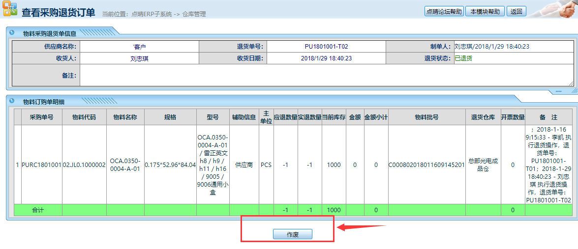 [点晴模切ERP]红字采购退货单如何作废驳回