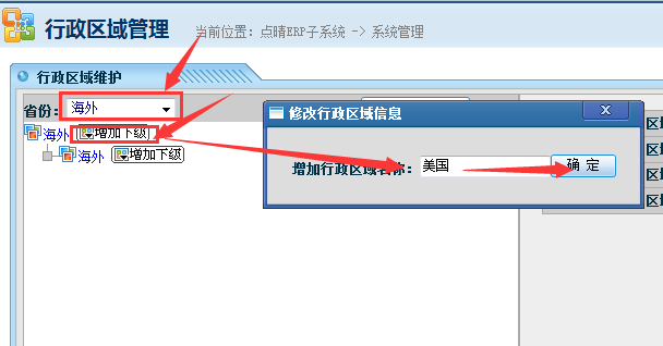 1、系统管理——客户管理——行政区域维护 2、选择海外——点击增加下级——录入名称——点击增加 点晴模切ERP更多信息:http://moqie.clicksun.cn,联系电话:4001861886 该文章在 2018/5/21 15:24:40 编辑过 |