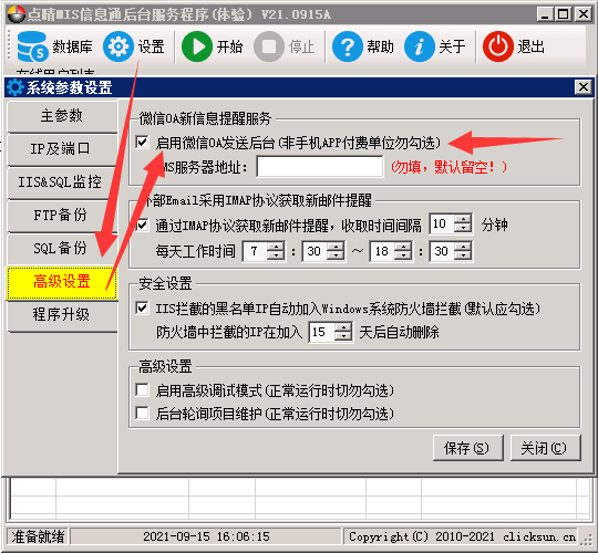 点晴MIS信息通微信版安装配置(微信OA)开通操作指引