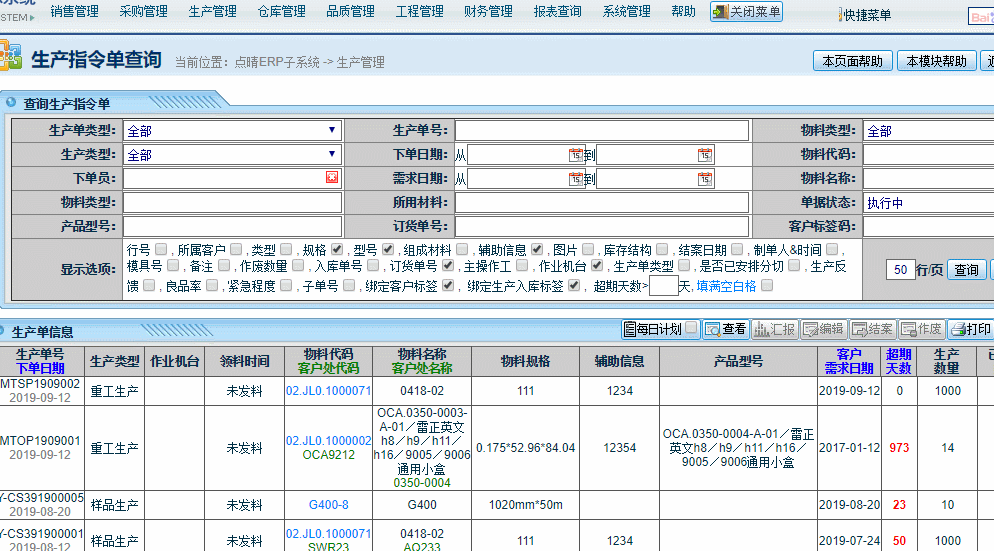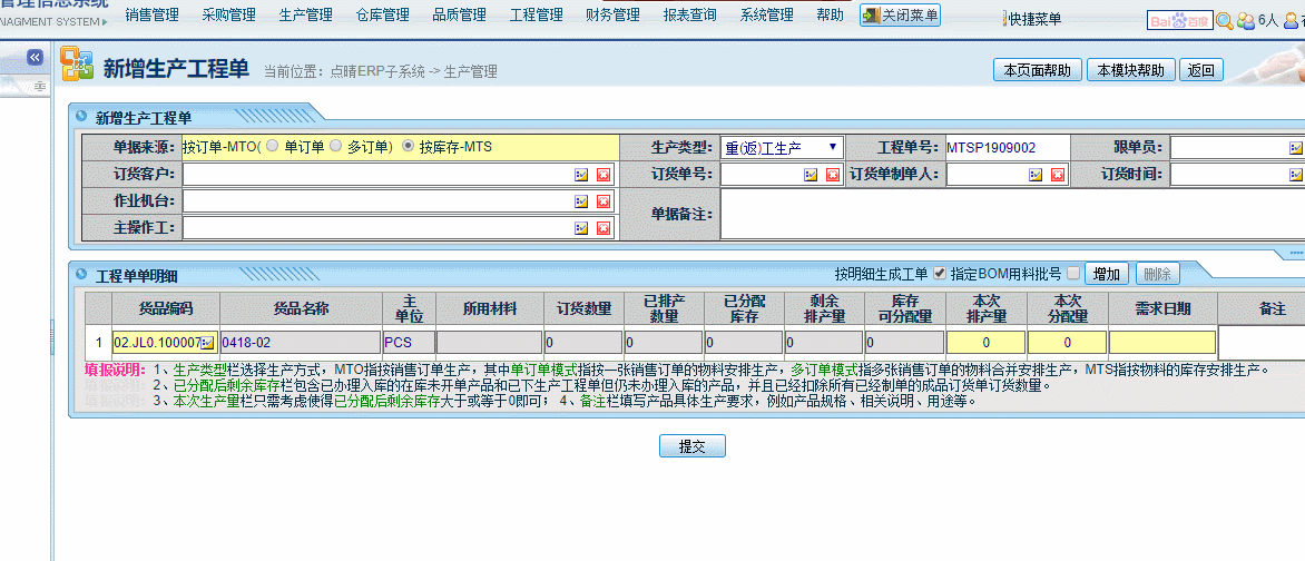 操作步骤:生产管理——排产管理——新增生产任务单,如下图所示: