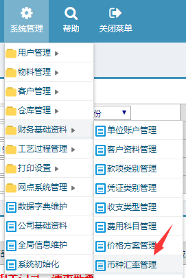 操作步骤1:系统管理-财务基础资料-币种汇率管理