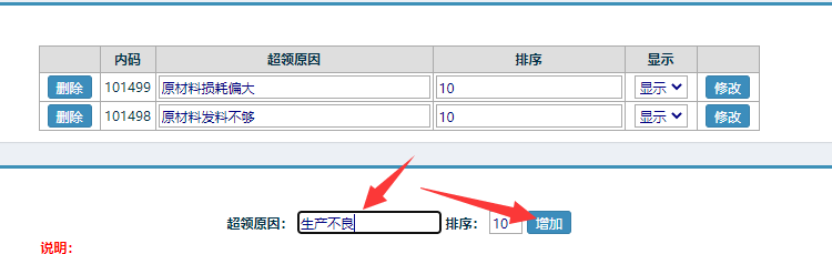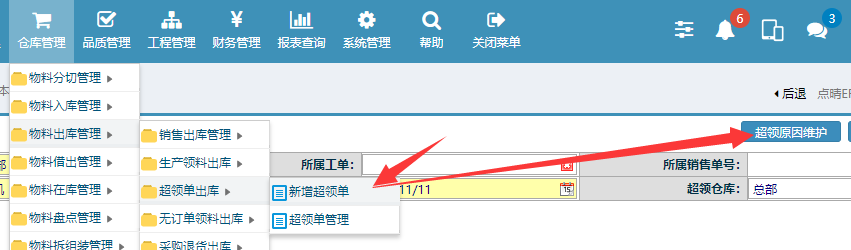 操作说明:超领原因可以在右上角进行自定义设置,如下图操作: