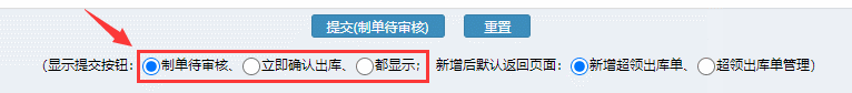 如果超领单需要审核确认后才生效,那么需要以管理员身份登录以上页面,然后在如下位置勾选“制单待审核”,以后操作人员制单提交后,就需要审核确认才会生效: